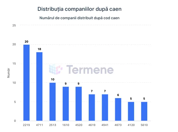 - 5 firme se ocupă de „lucrări de construcții a clădirilor rezidențiale și nerezidențiale” (cod CAEN 4120)