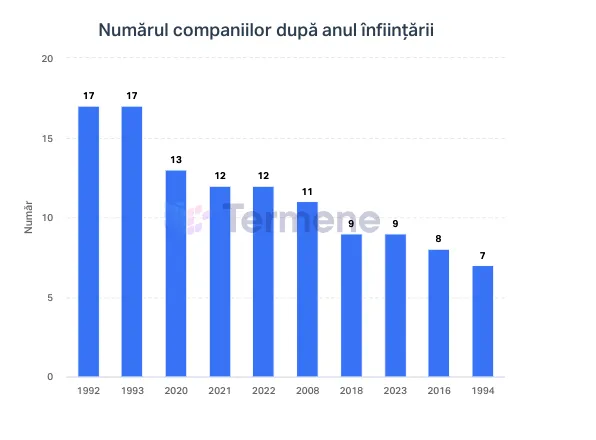 Din cele 205 firme înregistrate în Vânători-Neamț, cele mai multe sunt societăți înregistrate acum 22 și 21 de ani. Apetitul antreprenorilor de a deschide afaceri în această localitate a crescut însă în ultimii ani, după 2021.