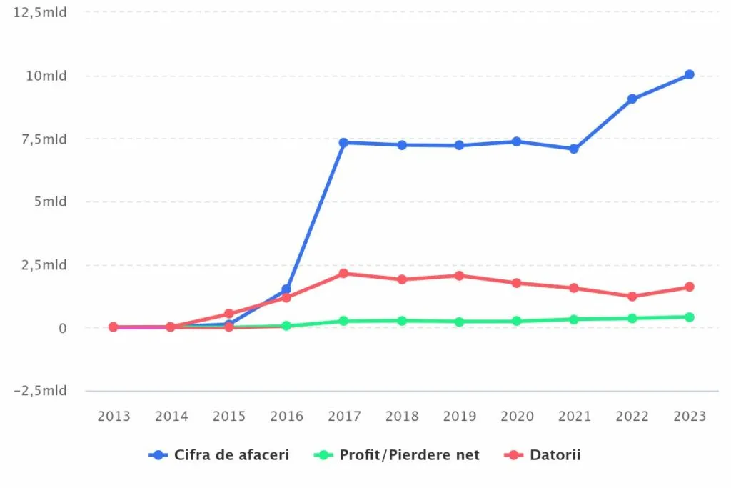 Analiză bazată pe datele platformei Termene.ro: Divizia Mercedes din România și-a crescut atât cifra de afaceri, cât și profitul în anul 2023 față de anul precedent.