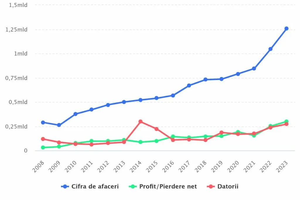 Anul trecut, numărul mediu al angajaților a fost de 845, un număr cu 4% mai mare față de cel din 2022.