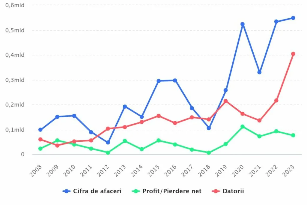 În 2010, cifra de afaceri era puțin peste 155 de milioane de lei. După un an, scădea la 46 de milioane de lei. Compania ajungea la afaceri de 523 de milioane de lei în 2020. În 2021, afacerile coborau la 328 de milioane de lei.