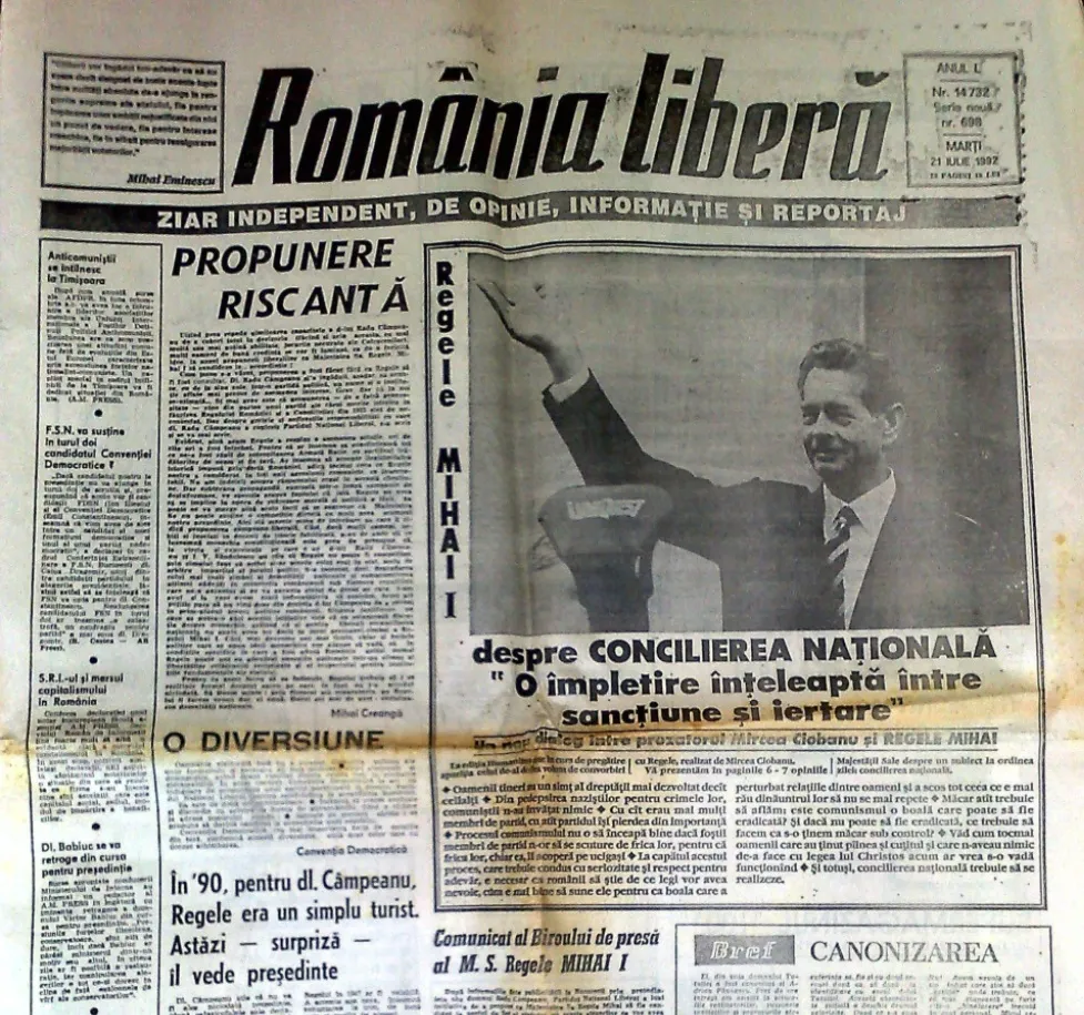Editie a publicatiei Romania Libera (vara anului1992)