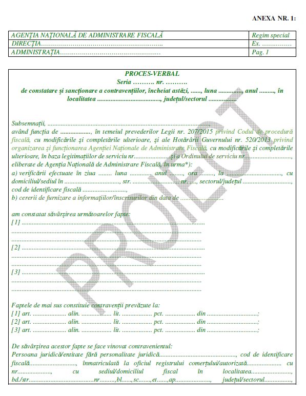 Agenția Națională de Administrare Fiscală (ANAF) a propus săptămâna trecută un nou model pentru formularul de Proces-verbal de constatare și sancționare a contravențiilor. Noul document tipizat ar urma să fie introdus în partea a doua a acestui an, așa cum ne-au conformat reprezentanți ai instituției.