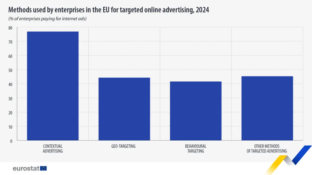 Eurostat arată că 32,6 % din firmele din UE au apelat la publicitate plătită online în 2024. Metodele de targetare online sunt diverse: