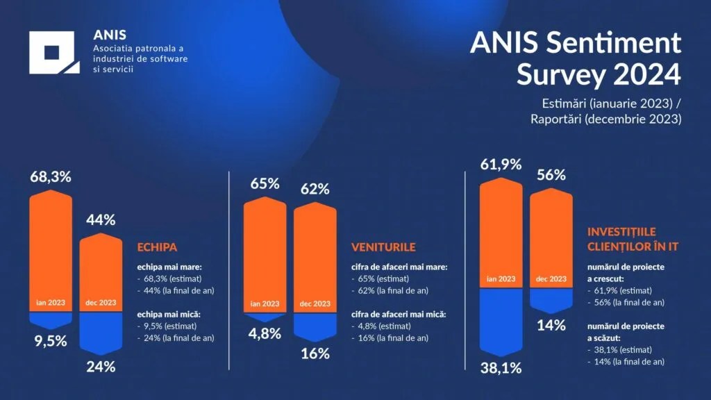 Conform unui sondaj inițiat de către ANIS (Asociația Patronală a Industriei de Software și Servicii), realizat la finalul lunii decembrie 2023, 64 dintre companiile IT intenționează să termine anul 2024 cu o echipă mai mare decât în 2023. Astfel 28% dintre cei chestionați estimează că echipa lor va stagna în acest an și numai 8% consideră că aceasta va scădea pe parcursul anului.