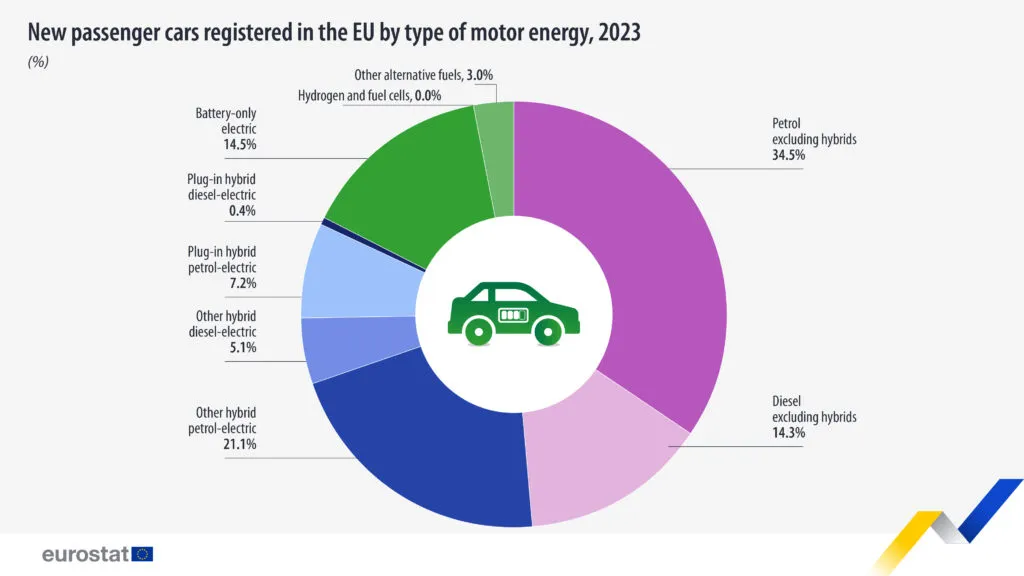 Mașinile hibride și electrice reprezintă 48% din noile înmatriculări pentru statele din Uniunea Europeană, conform unui studiu realizat de Eurostat, biroul de statistică al Comisiei Europene.