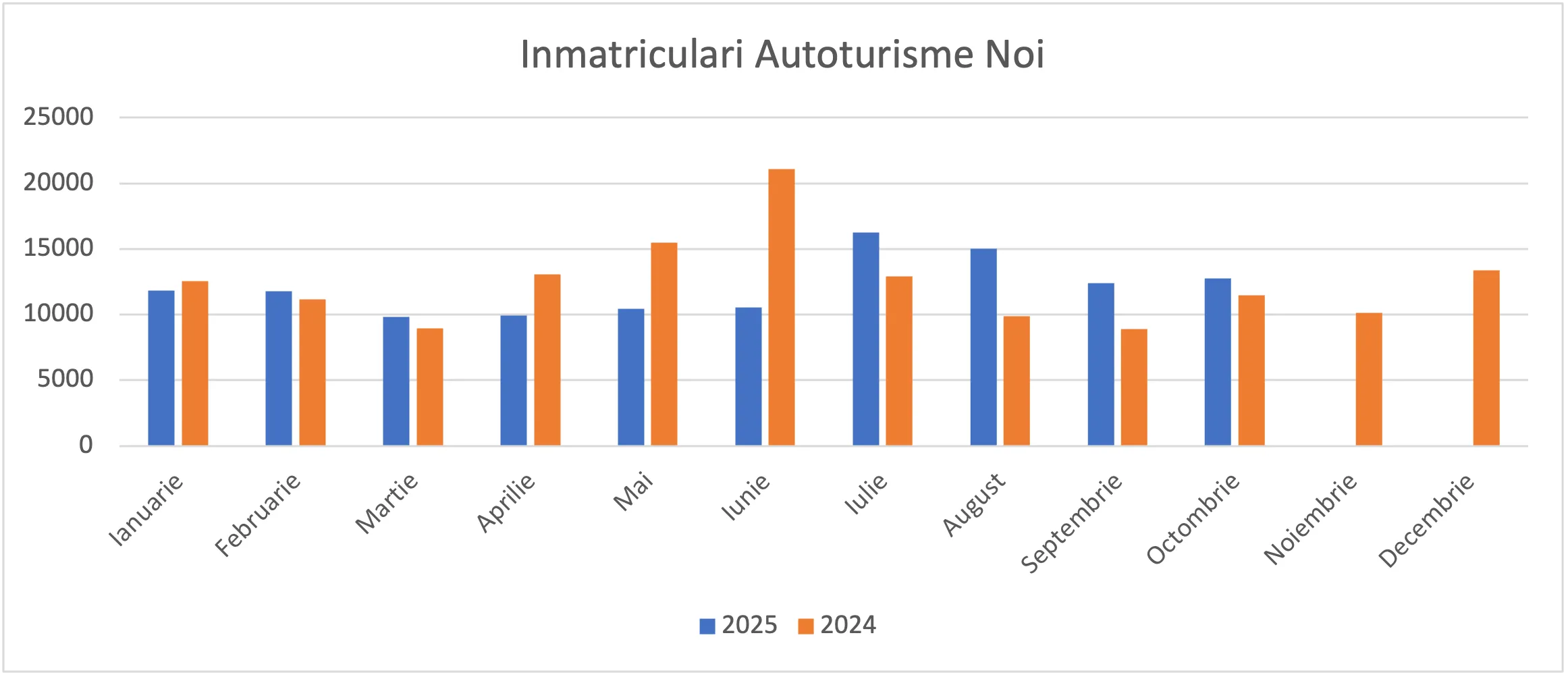 Înmatriculările de autoturisme noi au crescut cu 11,5% în octombrie 2025 comparativ cu octombrie 2024, ajungând la un volum de 12.769 de unități, conform datelor preliminare transmise de Asociația Producătorilor și Importatorilor de Automobile din România (APIA) pe baza informațiilor transmise de Direcția Generală Permise de Conducere și Înmatriculări (DGPCI).