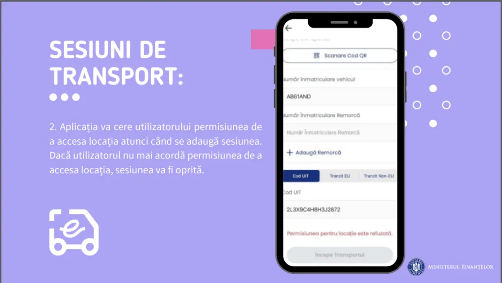 Prin scanarea codului QR se pot obține numărul de înmatriculare al vehiculului și codul UIT.