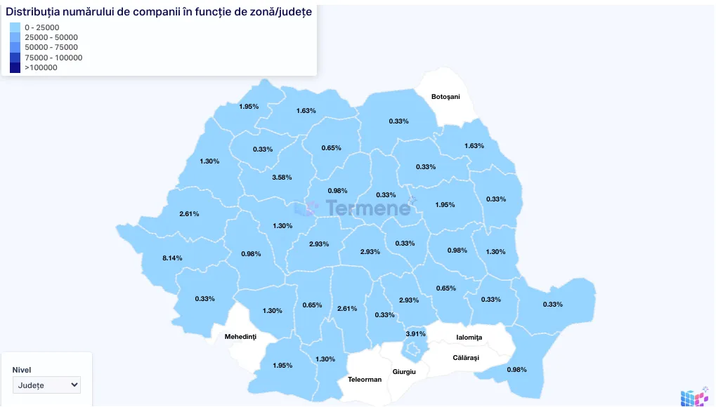 Analiză realizată cu ajutorul datelor platformei Termene AI. România are doar 304 de firme care au peste 1.000 de salariați pe care să le putem considera mari companii din acest punct de vedere. Cifrele lor de afaceri depășesc 120 de miliarde de euro anual.