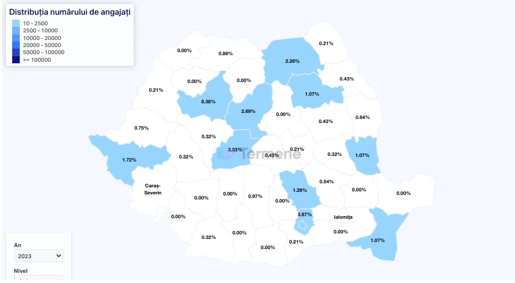 De fapt doar 10 județe și Bucureștiul au holdinguri care au angajați.