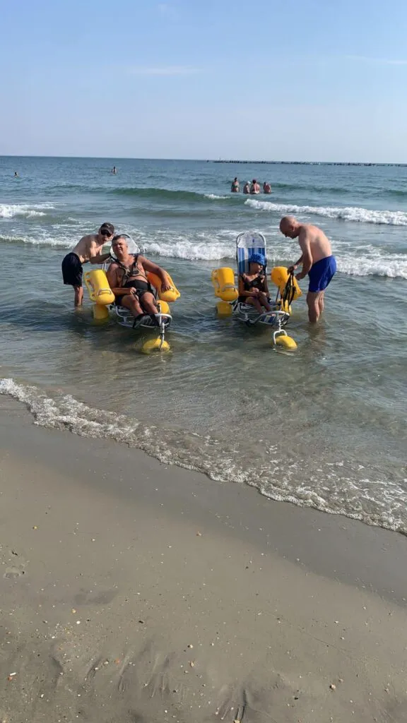 Asociației Împreună pentru Viitor din Constanța are proiecte pentru adaptarea plajelor la nevoilor persoanelor cu dizabilități încă din 2015. Este adevărat, la un nivel redus. Până anul trecut, a reușit să doteze patru plaje cu scaune speciale care permit persoanelor cu nevoi speciale să intre în apă și să simtă valurile Mării Negre.
