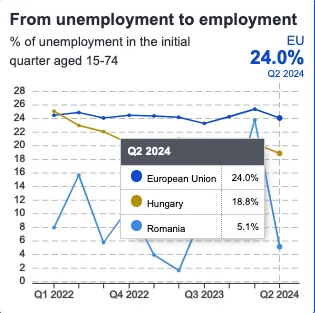 Ungaria pentru că are un procent mai mic față de România al șomerilor care devin inactivi față de România cu peste 7 puncte procentuale