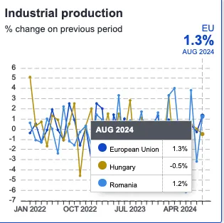 Producția de servicii în UE a revenit la creștere lunară în iulie 2024, inversând scăderea observată în iunie 2024. O perspectivă mai amplă a variațiilor de la o lună la alta arată o tendință pozitivă pentru sectorul serviciilor, culminând cu o creștere anuală mai pronunțată în iulie 2024.