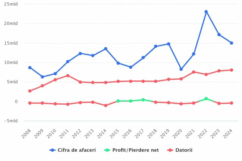 În 2024, Rompetrol Rafinare a raportat o cifră de afaceri netă de 15 miliarde lei, în scădere cu 13% față de 2023, când a fost de 17,12 miliarde lei.