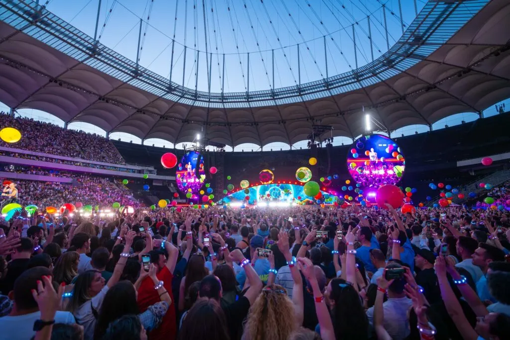 Un concert Coldplay în 2024 a generat, estimativ, 32,2 milioane RON, adică aproape dublu față de fiecare concert Guns N’ Roses sau Depeche Mode din 2023 (~16,3 milioane de lei).