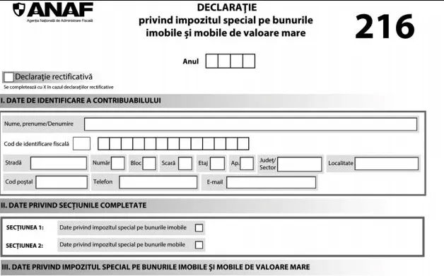 Sfaturile ANAF despre raportarea impozitul special pe automobile de lux și proprietăți de valoare. Cum se completează Formularul 216