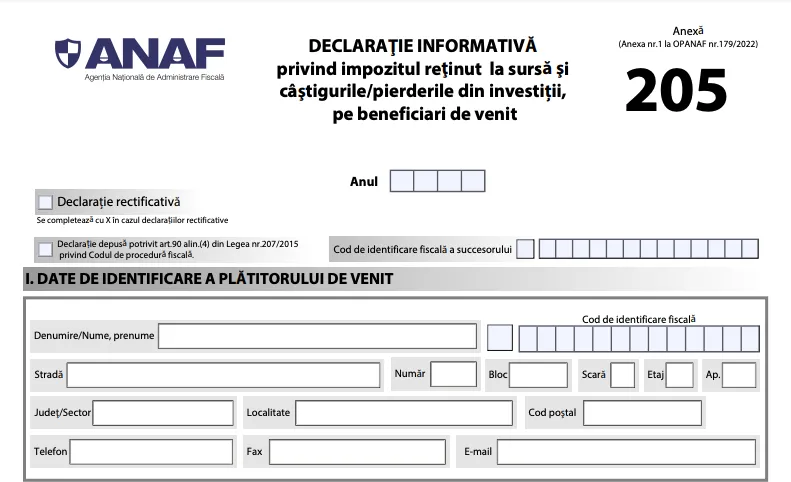 ANAF va modifica conținutul Formularelor 205 și 207 privind impozitele pe venituri reținute la sursă