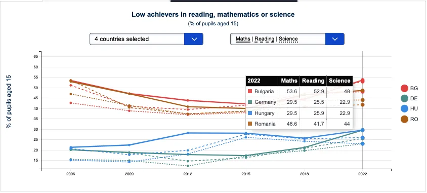 Analiza sistemului de educație din România. Rezultate foarte slabe la matematică, citit, științe, competențe digitale și finalizarea studiilor